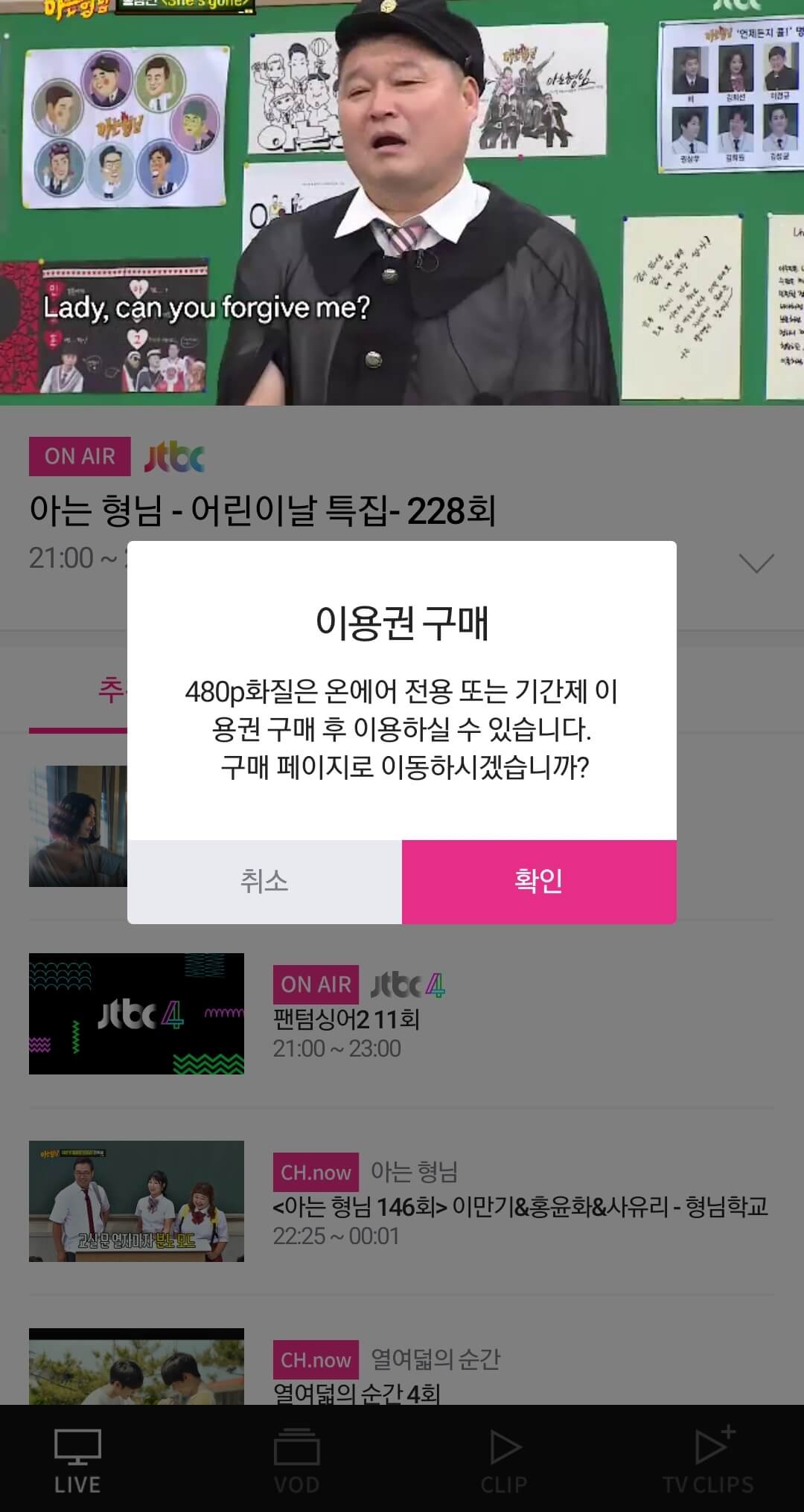 VOD 다시보기 : 결제가 필요한 서비스입니다.